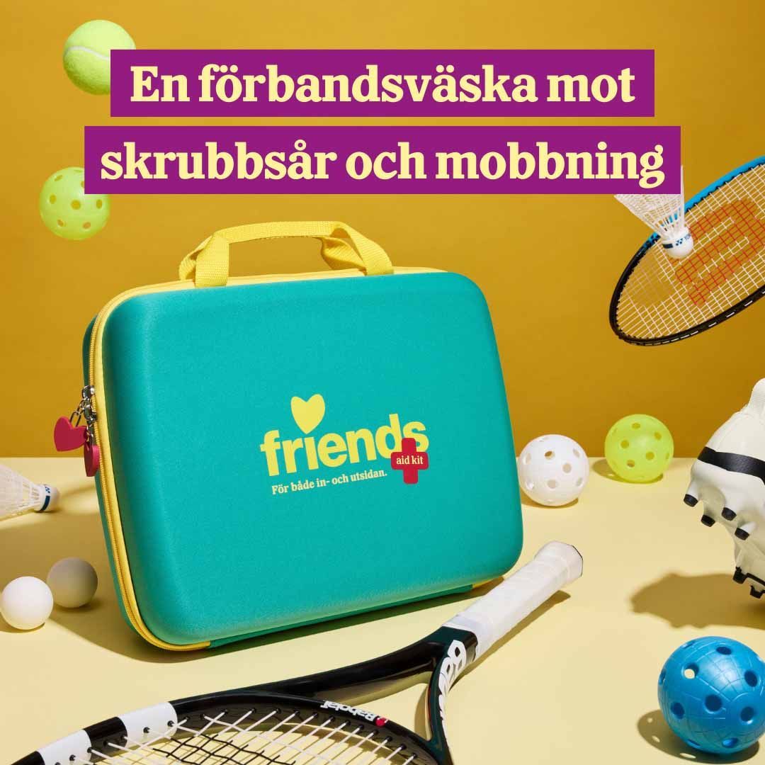 Friends Aid Kit är en innovativ produkt utvecklad av Stiftelsen Friends i samarbete med AKLA för att främja trygghet inom idrotten. Det är en förbandsväska för både in- och utsidan, vilket innebär att den innehåller både traditionella första hjälpen-artiklar och verktyg för att hantera och förebygga mobbning och andra trygghetsfrågor.
