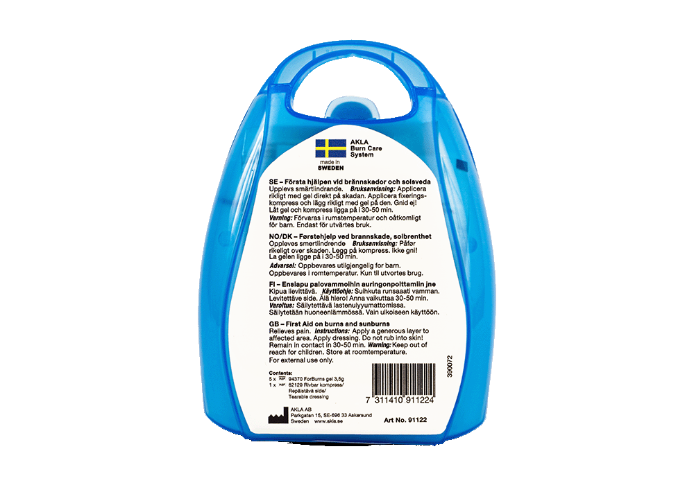 Small flexible kit to take with you to quickly relieve the minor burns or abrasions that can occur in everyday life
