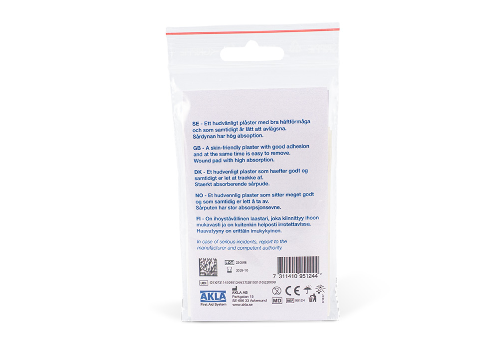 AKLA Plaster pads take up little space in your pocket or purse, perfect to always have available where there is a risk of minor damage and where there is a long way to fixed dressing equipment.
