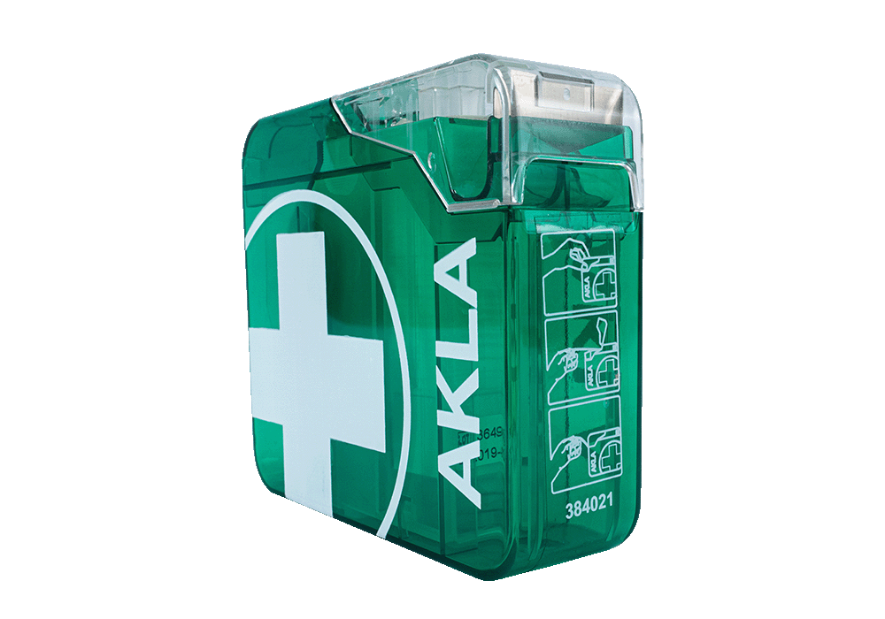 With AKLA Plaster Dispenser, plasters are manufactured according to the size and location of the wound. Pull out the tape in length as needed and close the lid to get a finished patch to use.