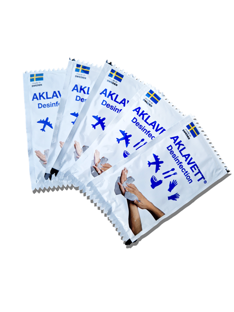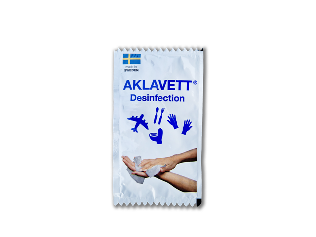 AKLAVETT ® is easy to take along everywhere. The soft nonwoven tissue is extra-large, 17 x 22 cm, which also makes it perfect to use for cleaning and disinfecting surfaces and objects such as toilet seats, handsets, toys, etc.