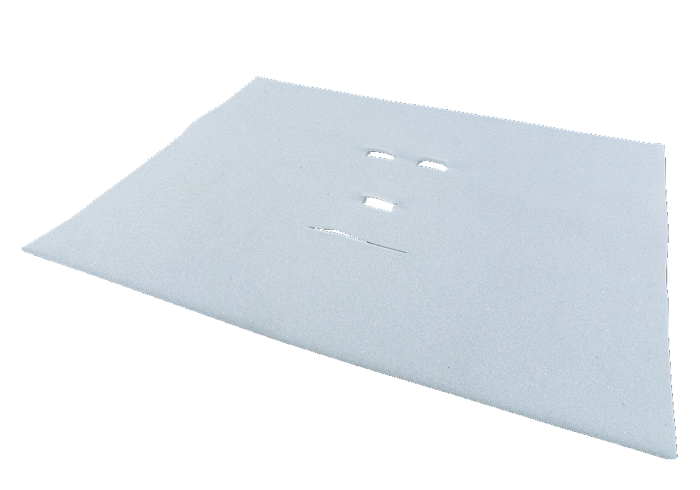Steril skumkompress med stansade hål för ögon - näsa - mun för användning på ansikte som är indränkt med AKLAs brännskadegel.