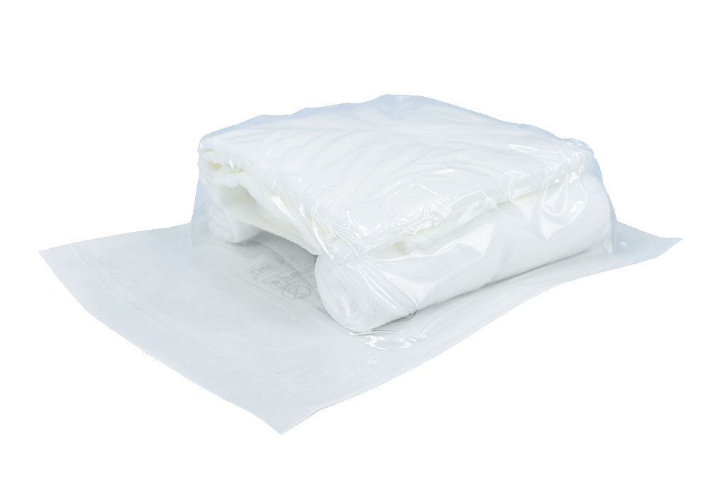 Sterilt förpackat i specialpåse av tålig tjock polyeten med rivtråd enligt försvarets modell för att klara tuffa krav.